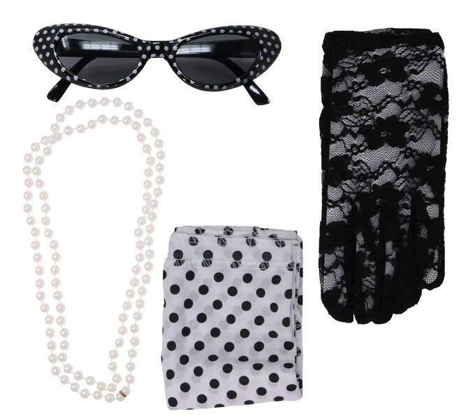 Zestaw lata 50 w kolorach czarno - białej kolorystyce.