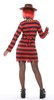 Sukienka z długim rękawem w czerwono-czarne pasy.