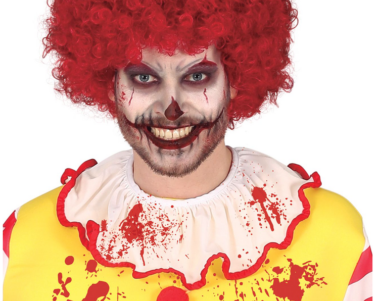 Zdobiony biało-czerwonym kołnierzem i rękawami.