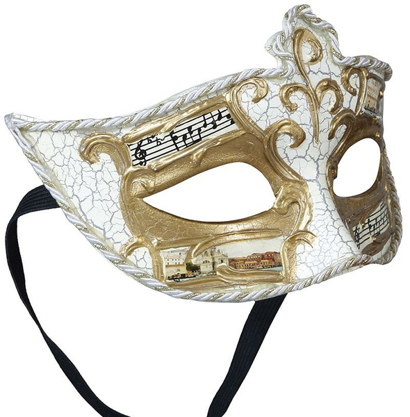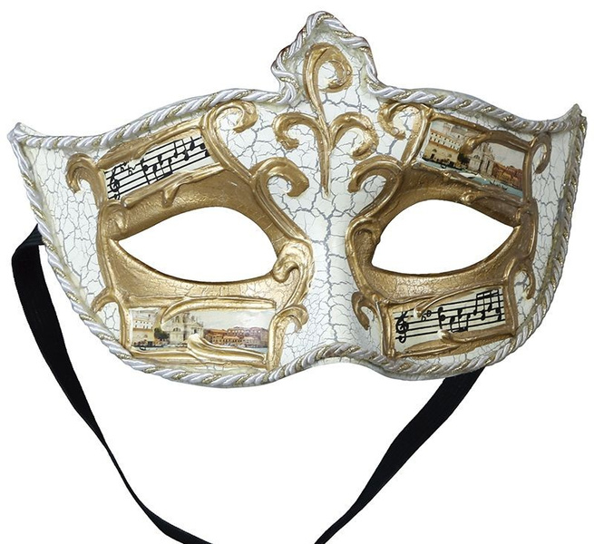 Posiada motyw popękanej maski z fragmentami pięciolinii oraz widok krajobrazu otoczonymi złotymi zdobieniami.