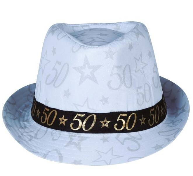 Kapelusz urodzinowy "50" w stylu gangsterskim.