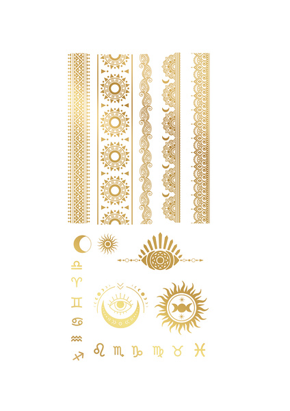 • Zestaw zawiera złote tatuaże (ornamenty i znaki zodiaku)