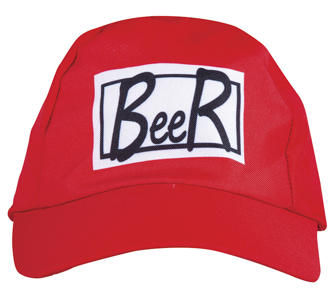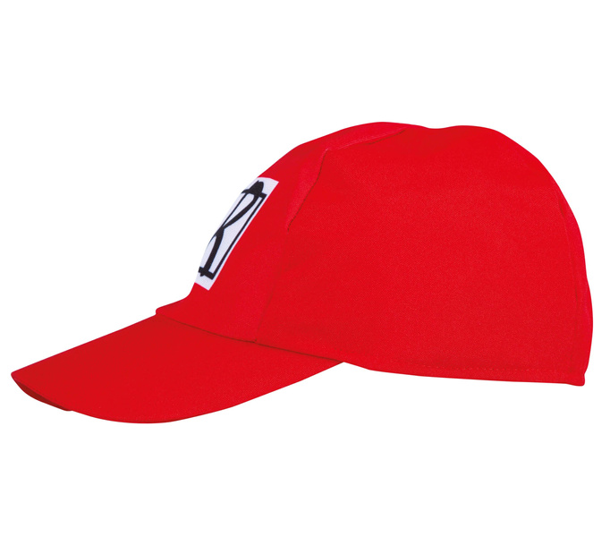 Czapka czerwona z daszkiem.