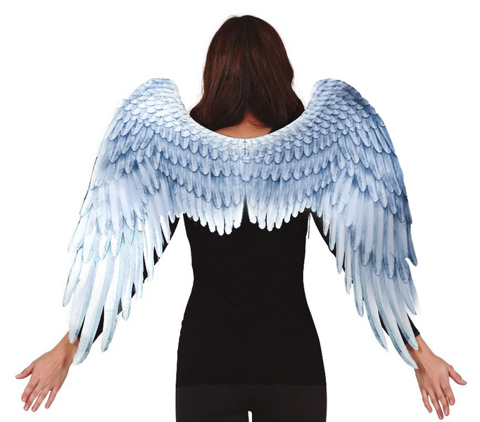 Srebrne skrzydła anioła wykonane z usztywnionego materiału.