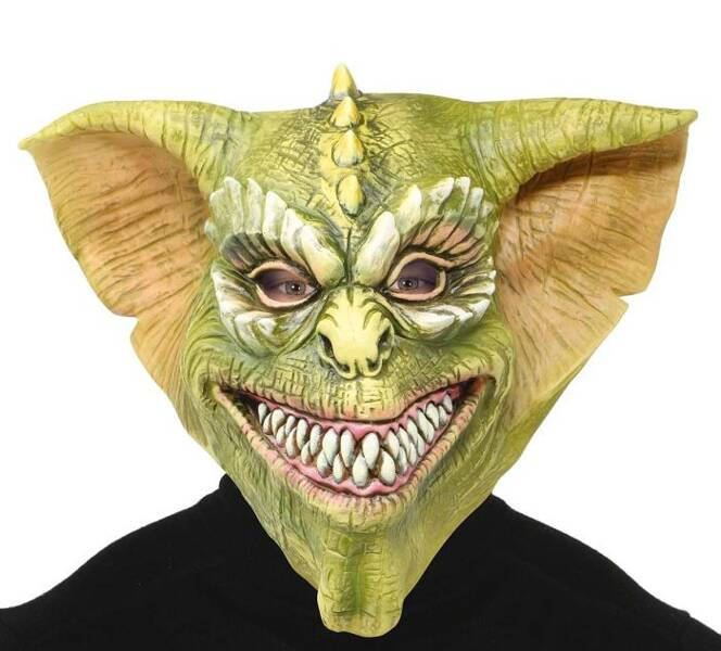 Maska lateksowa przedstawiająca stwora gremlina.
