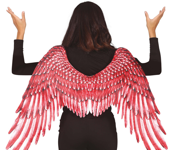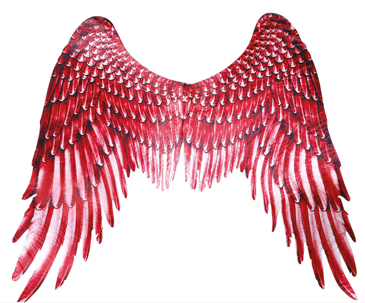 Skrzydła w czerwonym kolorze z usztywnionego materiału.