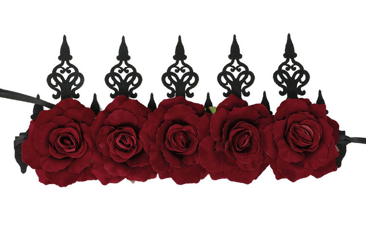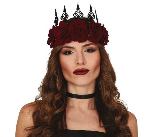 Posiada sztuczne czerwone kwiatki oraz czarne filcowe zdobienia.