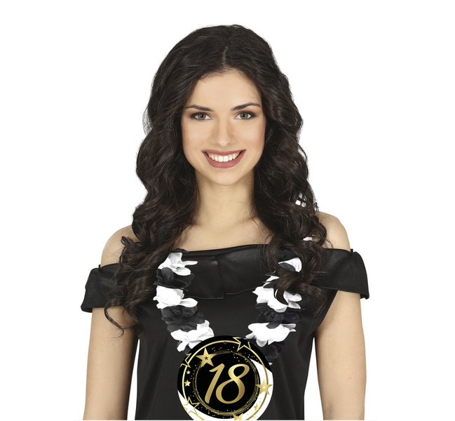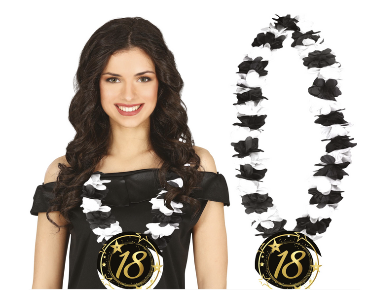 Boa zdobione okrągłą plakietką 18 urodzin.