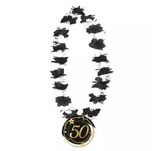 - Naszyjnik wykonany z ozdobnych czarnych i białych kwiatków.
