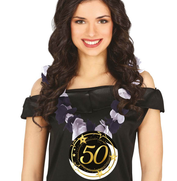Naszyjnik z Kwiatkami i Złotą Liczbą 50.