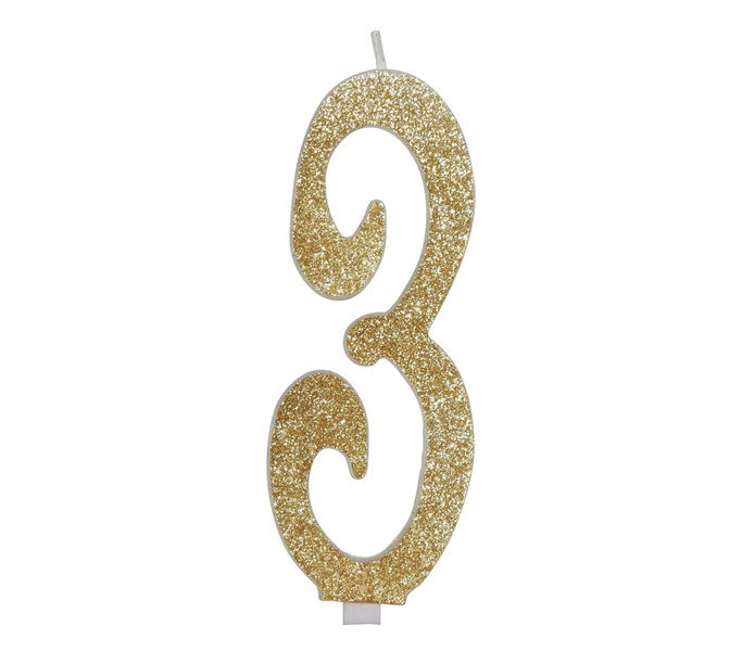 Świeczka urodzinowa w kształcie cyfry 3.