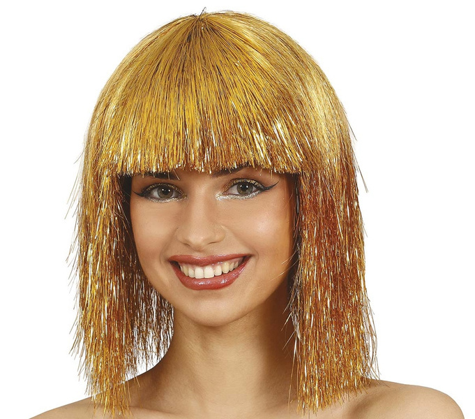 Peruka w kolorze złotym z prostą grzywką.