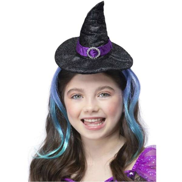 Produkt w kolorze czarnym, ozdobiona fioletową tasiemką.