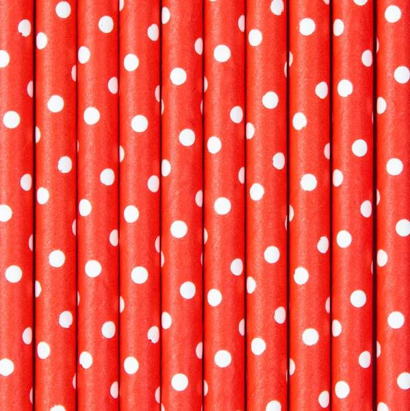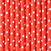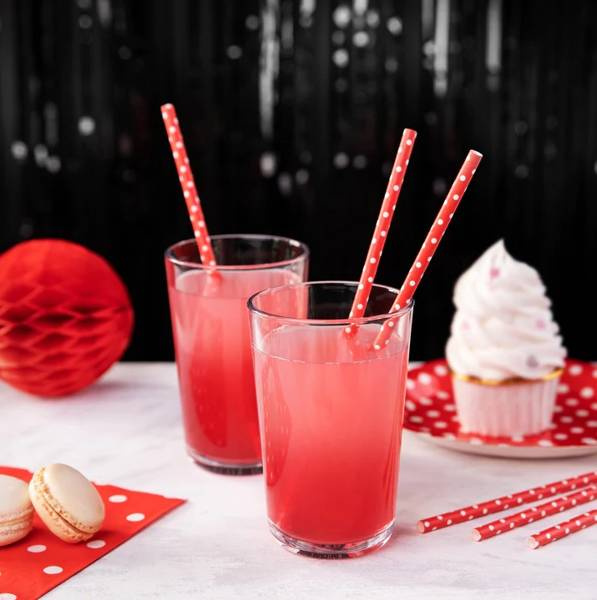 Słomki papierowe w kolorze czerwonym w białe groszki.