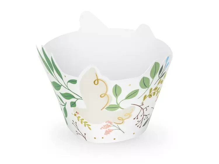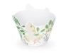 Produkt w kolorze białym ozdobiony wzorem w kwiaty i ptaki.