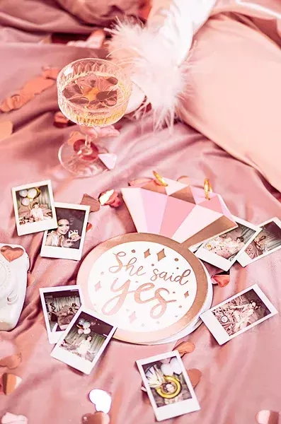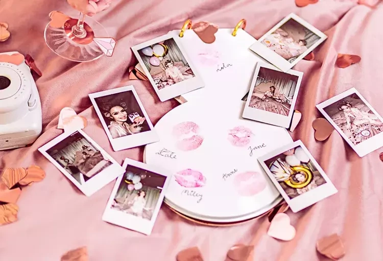 Księga gości wykonana z papieru w odcieniach różu.