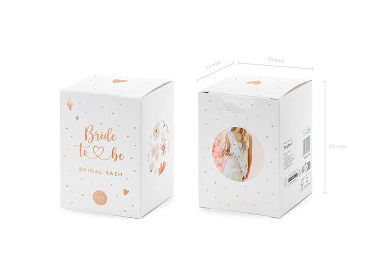 - Estetyczna szarfa papierowa w kolorze białym, ozdobiona kolorowymi, pastelowymi kwiatami i napisem "Bride to be".