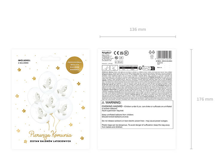 Balony lateksowe krystaliczne z dwustronnym nadrukiem gołębia.